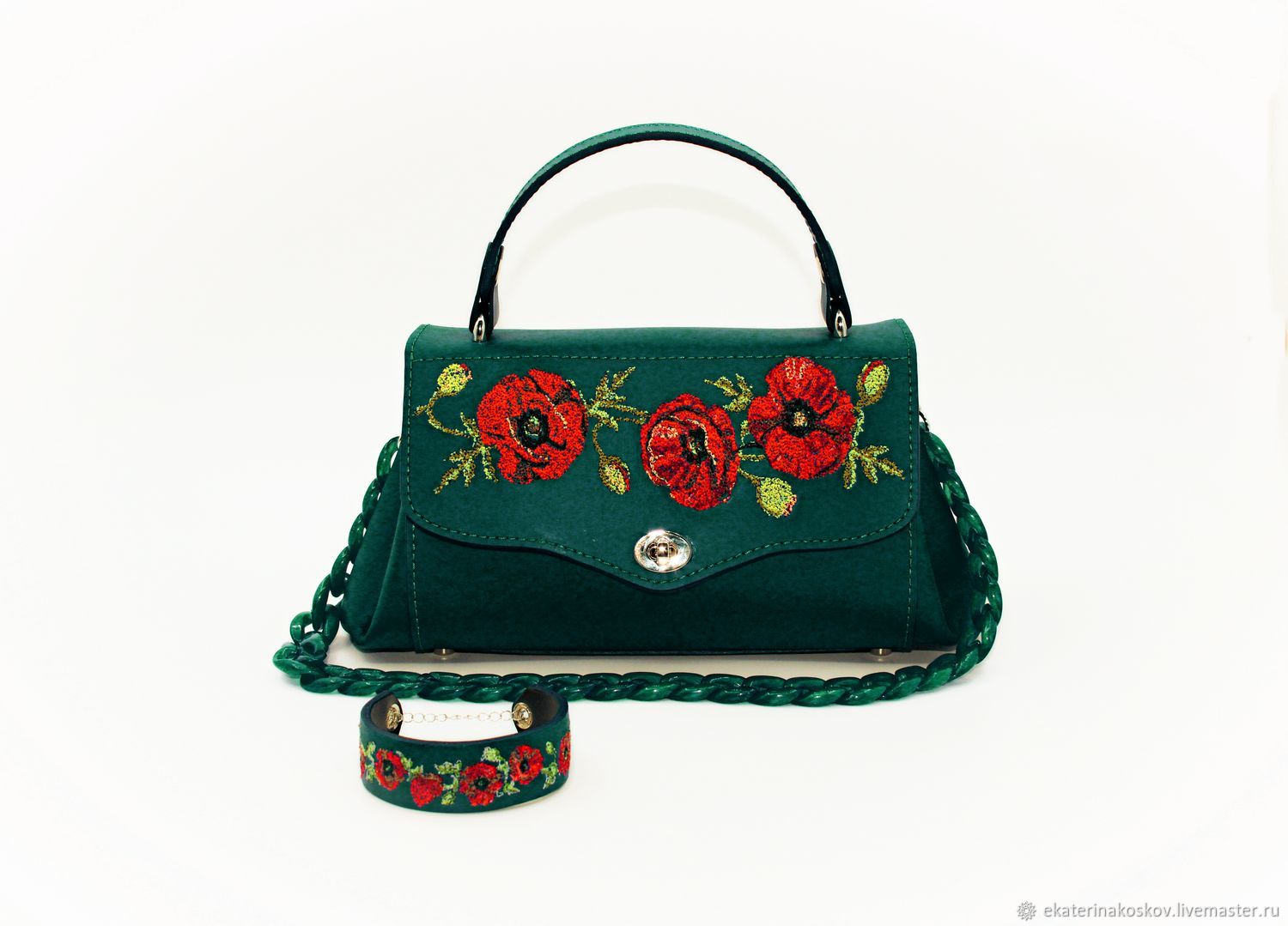 Сумка через плечо: зеленая сумка женская с вышивкой розы в интернет
