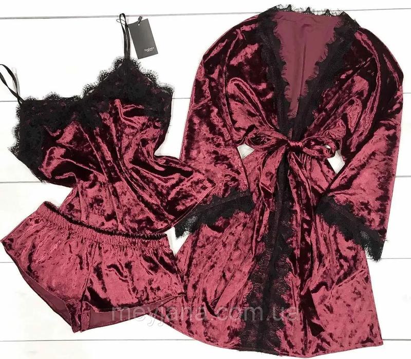 Выбор цвета женская пижама 3в1 пижама и халат с кружевом велюр