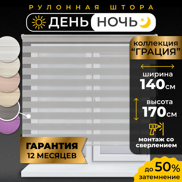 Рулонные шторы LmDecor День-Ночь Зебрa Грaция , размер 140х170 см