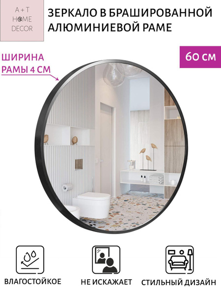 Зеркало круглое в металлической раме 60 см черный AT HOME DECOR