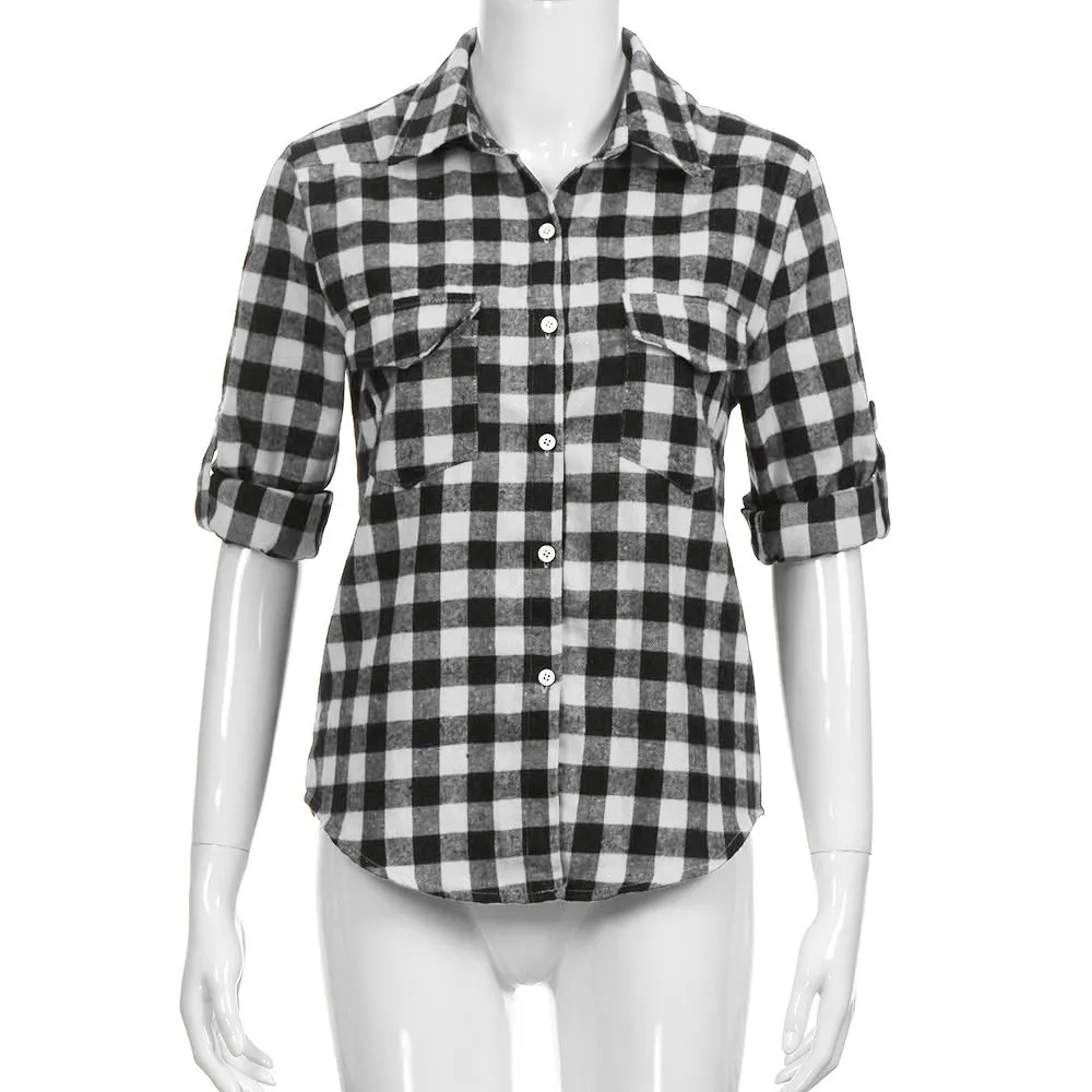 Рубашка женская в клетку, Классическая мешковатая блуза с отложным