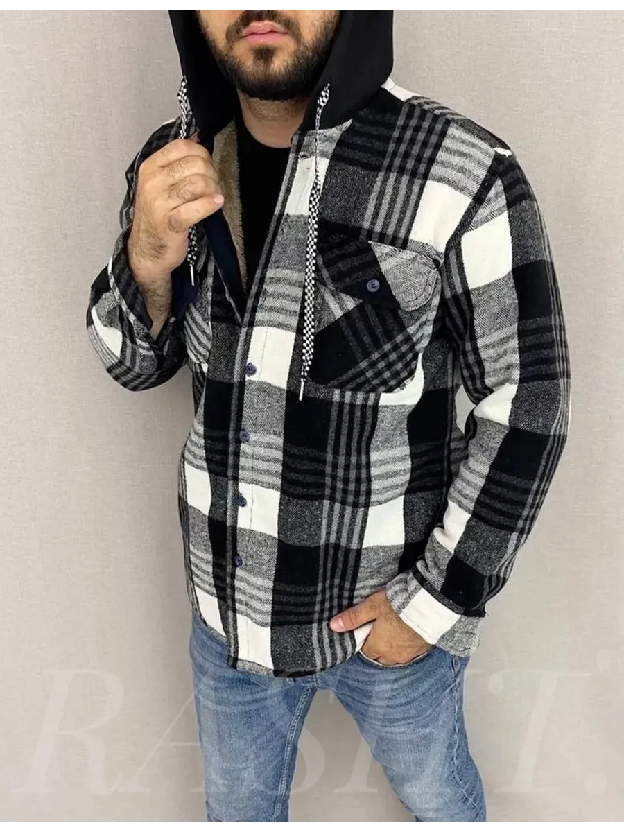 Мужская рубашка утепленная синяя в клетку Турция 5471 M