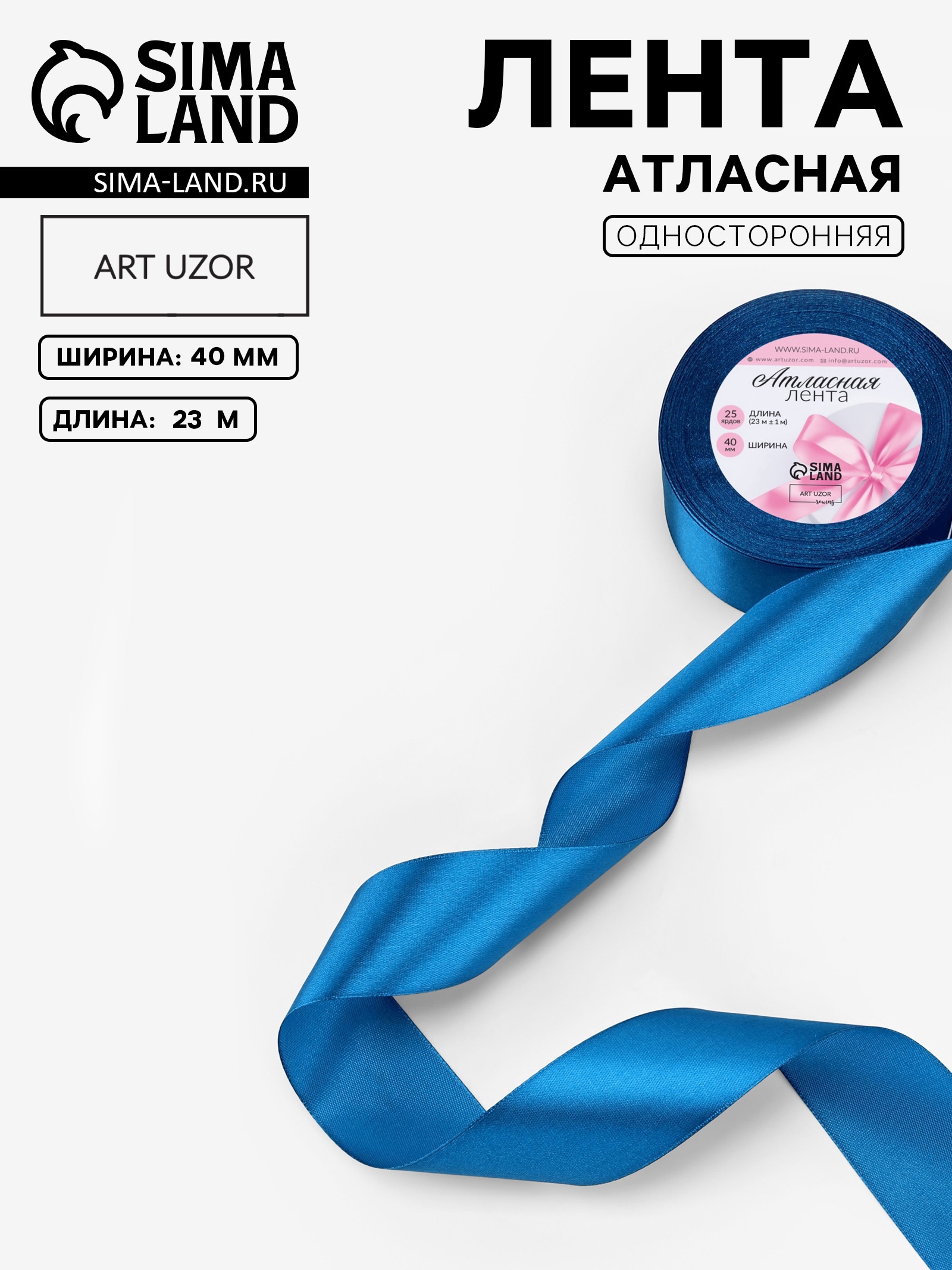 Лента атласная, 40 мм × 23 ± 1 м, цвет лазурно-синий №97 (1218345