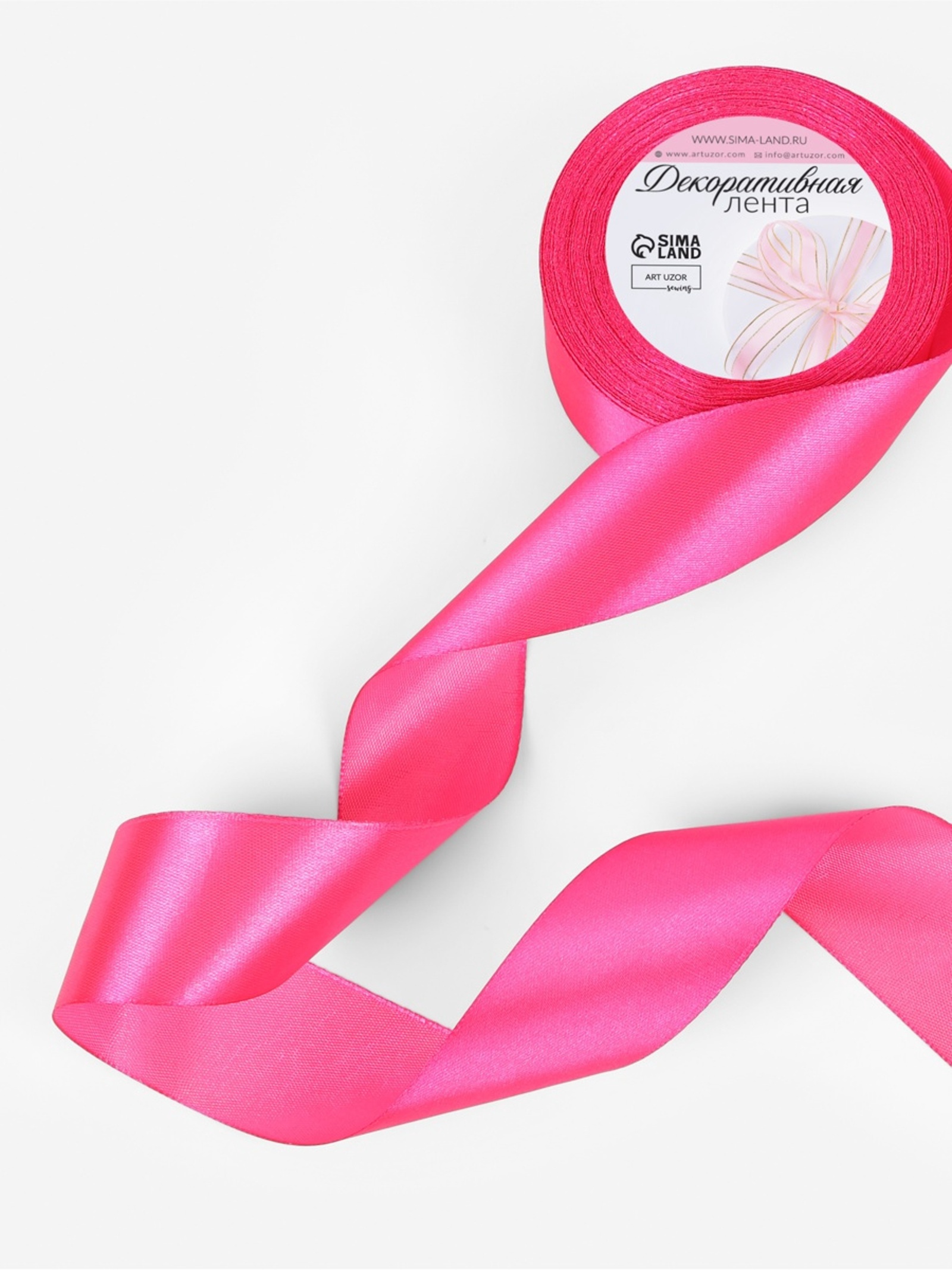 Лента атласная, 40 мм × 23 ± 1 м, цвет ярко-розовый №89 (9200742